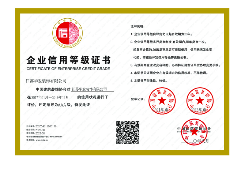 中裝協企業信用等級證書